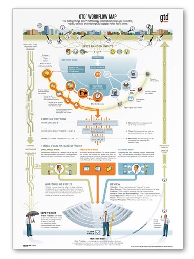 The GTD® Workflow Map is now available as a PDF download. This Map is a beautiful visual learning tool for understanding how David Allen’s models for control & perspective come together.