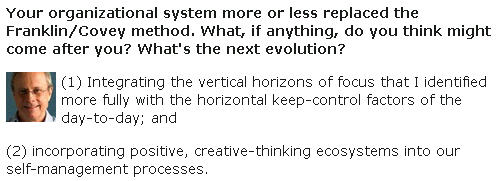 May 7, 2010July 12, 2014 Leave a comment on David Allen on procrastination, Twitter, what’s important to him and more… David Allen on procrastination, Twitter, what’s important to him and more… Ruud Hein did an interesting and educational interview with David Allen. It’s a quick read. Here’s an excerpt:
