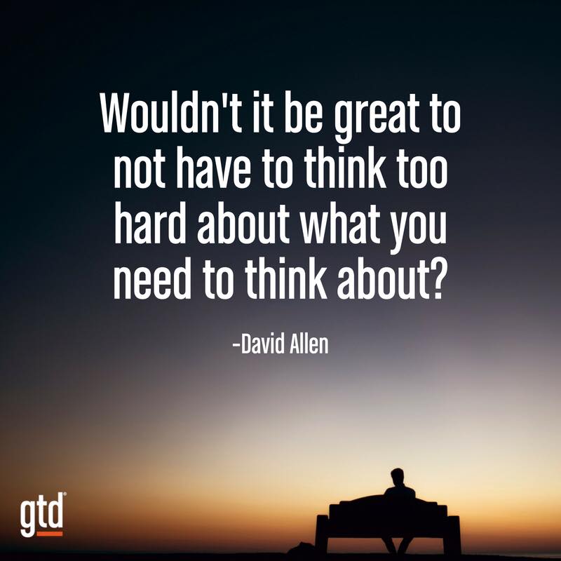 GTD, GETTING THINGS DONE, GTD Connect, GTD-Q, GTD Weekly Review, Mind Like Water, Ready For Anything, & Your mind is for having ideas, not holding them, are registered trademarks of the David Allen Company.