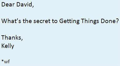 Try it out by sending a test message to yourself and typing *wf* in the body of the email somewhere, such as under your signature file. It should send a copy of the email to your @Waiting for folder. What this rule does is eliminate the step of having to CC: yourself or dig through your Sent file to find emails that you are waiting for a response.