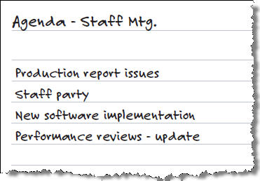 So, agendas. Give ’em a try. You may be surprised at the huge impact you’ll see with such a seemingly simple tool.