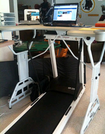 I have been interested in this idea for over a year. Unfortunately I don’t have the space for a treadmill, but I recently rigged up a way of working while on an exercise bike. The idea came from a Dr. at the Mayo Clinic.