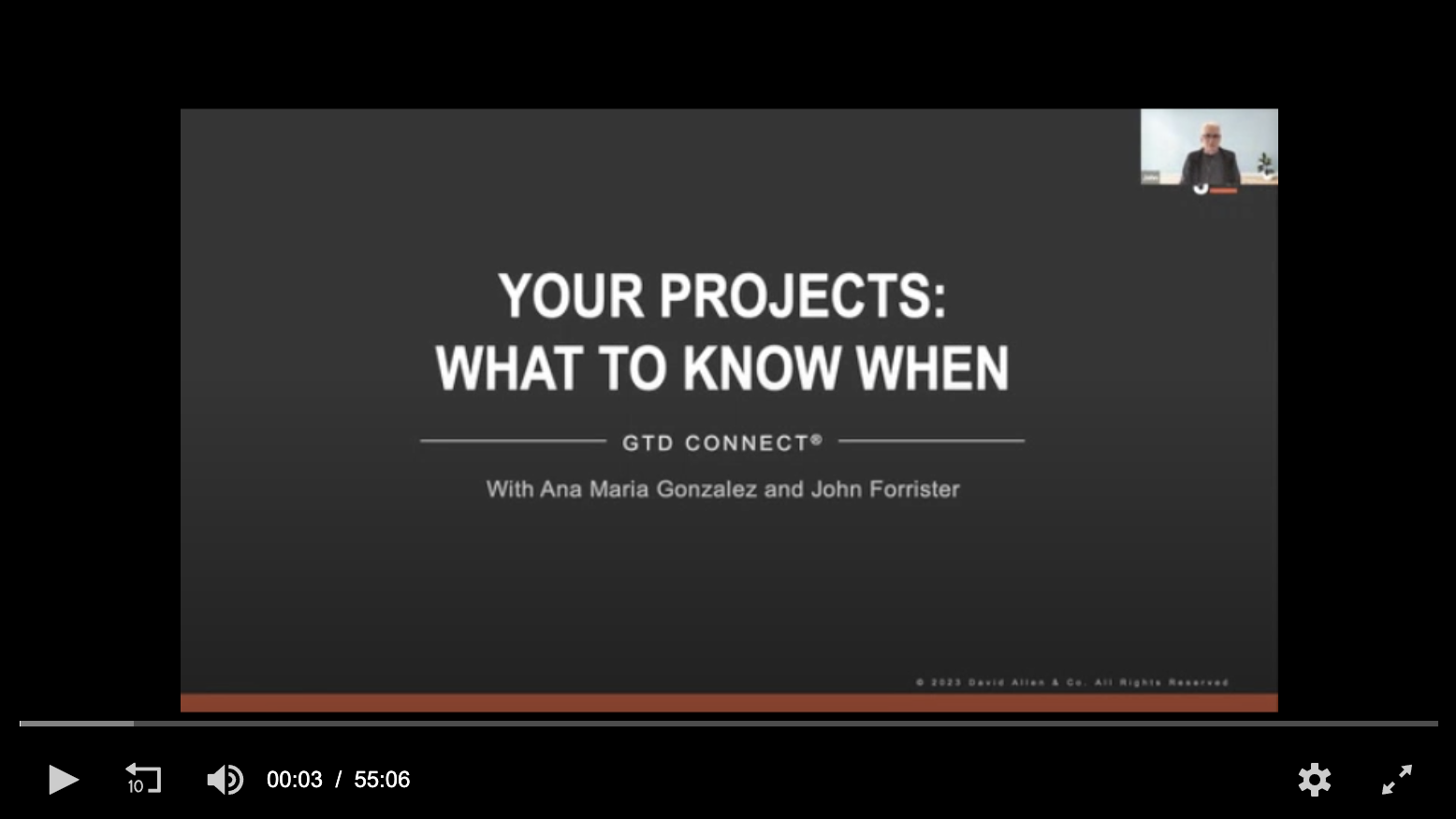 What do you need to know, and when, to stay on top of your projects from start to finish? This webinar examines how you define and list your projects, how you track what’s necessary for completion, and the rhythm for reviewing that assures you are in relaxed control.