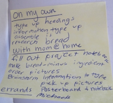 Step 2: Each day we started checking things off the list, depending on our energy level, schedule, etc. When we were out at the mall one evening, my daughter said, “Since we’re running errands, can we pick up the poster board and notebook I need from the art store?” Fifteen minutes later, it was done.
